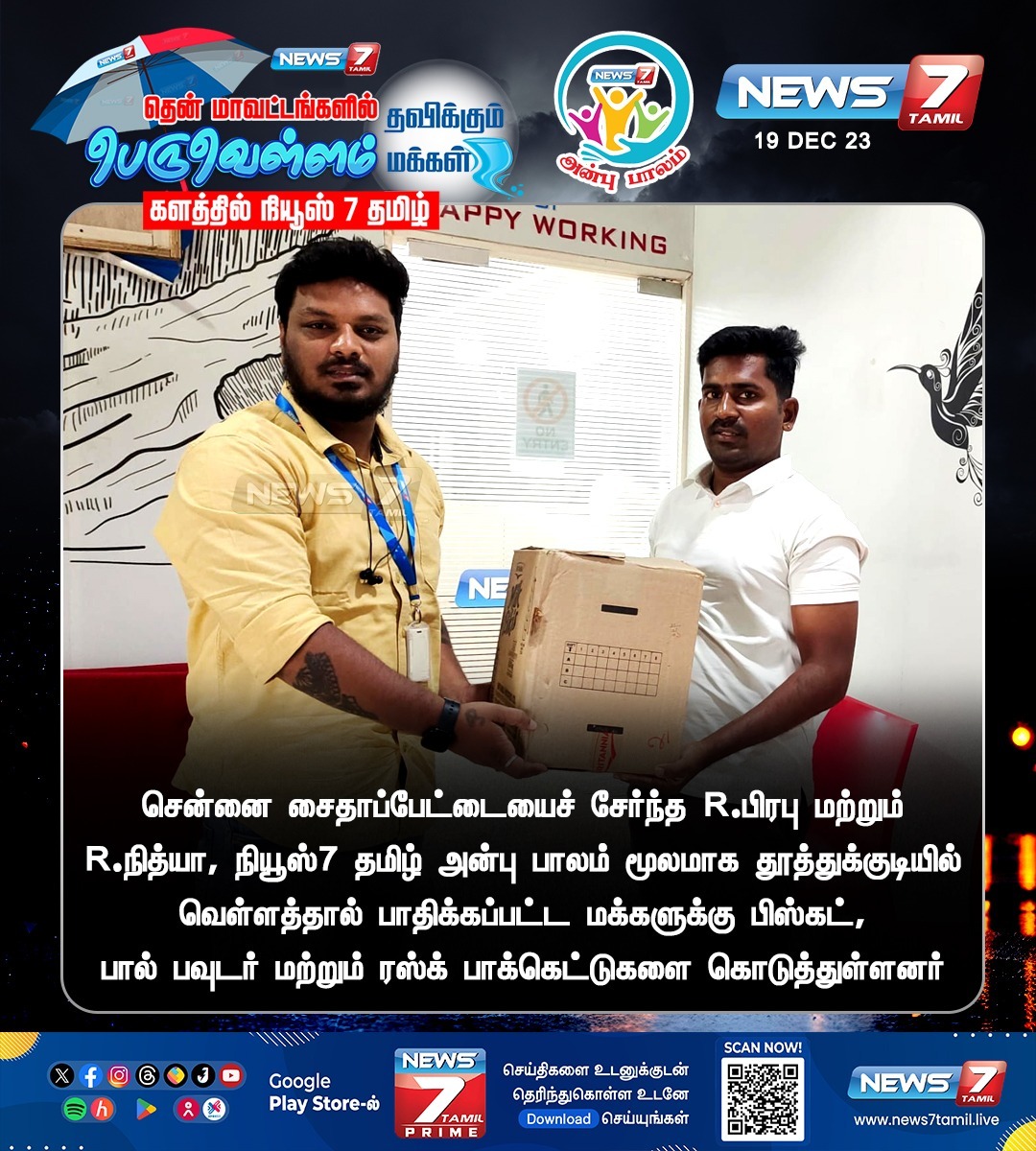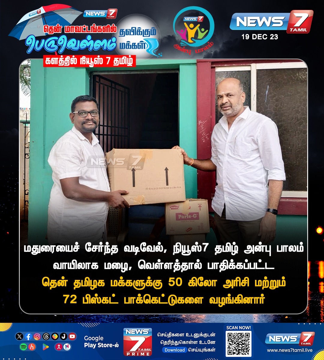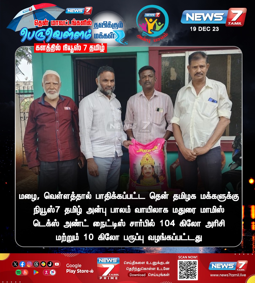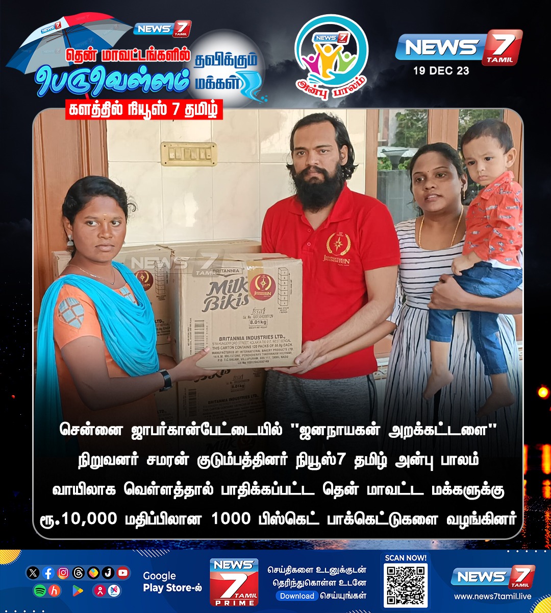 'மிக்ஜாம்' புயல், வெள்ளத்தால் பாதிக்கப்பட்ட மக்களுக்கு பிரபு எல்த் & டெவலப்மென்ட் டிரஸ்ட், இம்மானுவேல் ஹெல்த் கேர் பிரைவேட் லிமிடெட், எல்சடாய் இம்மானுவேல் ஹெல்த்கேர் பவுண்டேஷன் மற்றும் நியூஸ்7 தமிழ் அன்பு பாலம் சார்பில் சிறப்பு மருத்துவ முகாம்; ஏராளமான பொதுமக்கள் கலந்து கொண்டு சிகிச்சை பெற்றனர்.