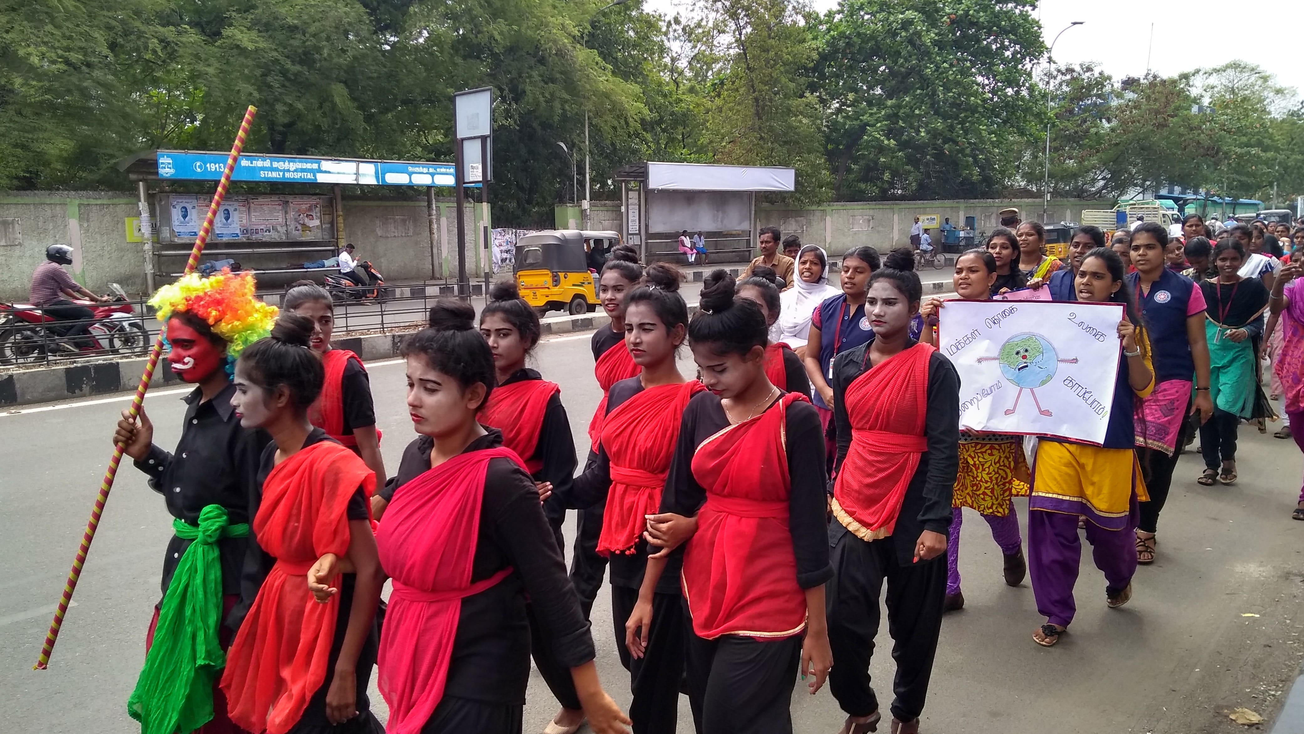 சென்னையில் பாரதி அரசுக் கல்லூரி மற்றும் நியூஸ் 7 தமிழ் அன்பு பாலம் இணைந்து விழிப்புணர்வு பேரணி