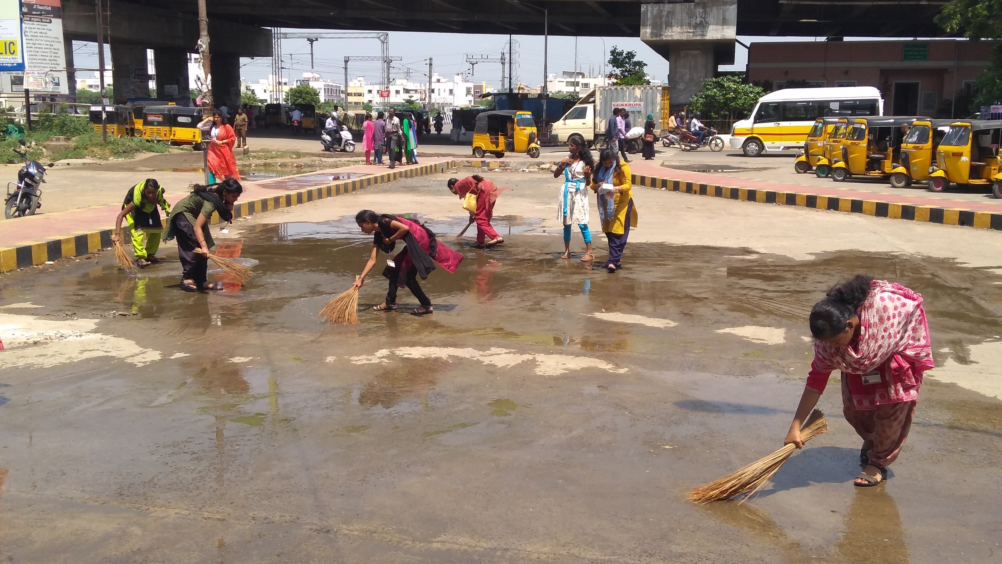 அன்புபாலம் மூலம் வேளச்சேரி இரயில் நிலையத்தை தூய்மைப் படுத்திய சென்னை குருநானக் கல்லூரி மாணவர்கள்